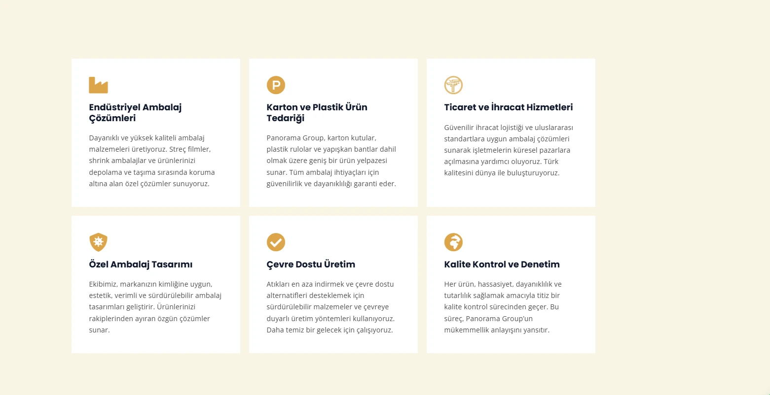 تم تصميم موقع Panorama Group لعرض نشاط الشركة التركية المتخصّصة في الحلول الصناعية والتغليف والتجارة الدولية بأسلوب احترافي وواضح يركّز على تعزيز الهوية التجارية وتقديم الخدمات بشكل مبسّط وجذّاب. يُظهر الموقع قدرة الشركة على توفير حلول مبتكرة في مجال التغليف والمواد الصناعية، مع إبراز خبرتها في الأسواق المحلية والدولية.